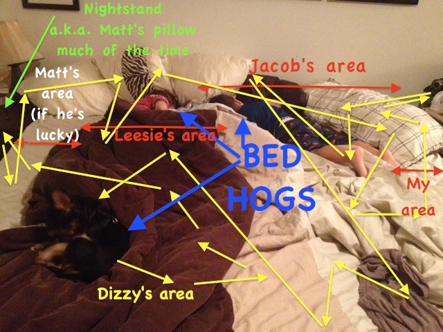 What a hilarious picture! I am always amazed at how little bed space my giant carcass will fit in.
