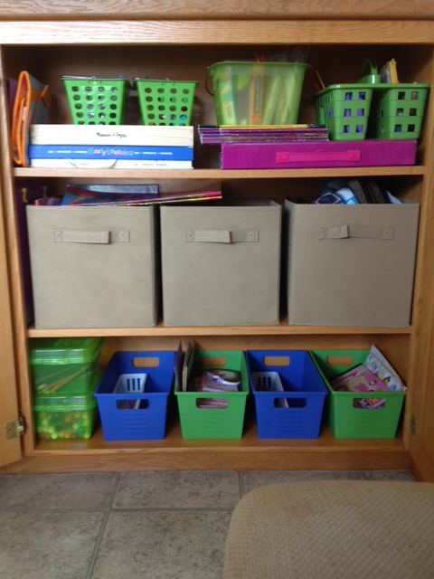 photo(83)And I’m kind of hating that picture because of the stack of workbooks that are off-centered, but they don’t fit anywhere else. I also hate the pink art case because it doesn’t match and makes the workbooks sit awkwardly, but Matt said I need to get over it and store the art stuff in the art cupboard, even if it doesn’t match. GASP.